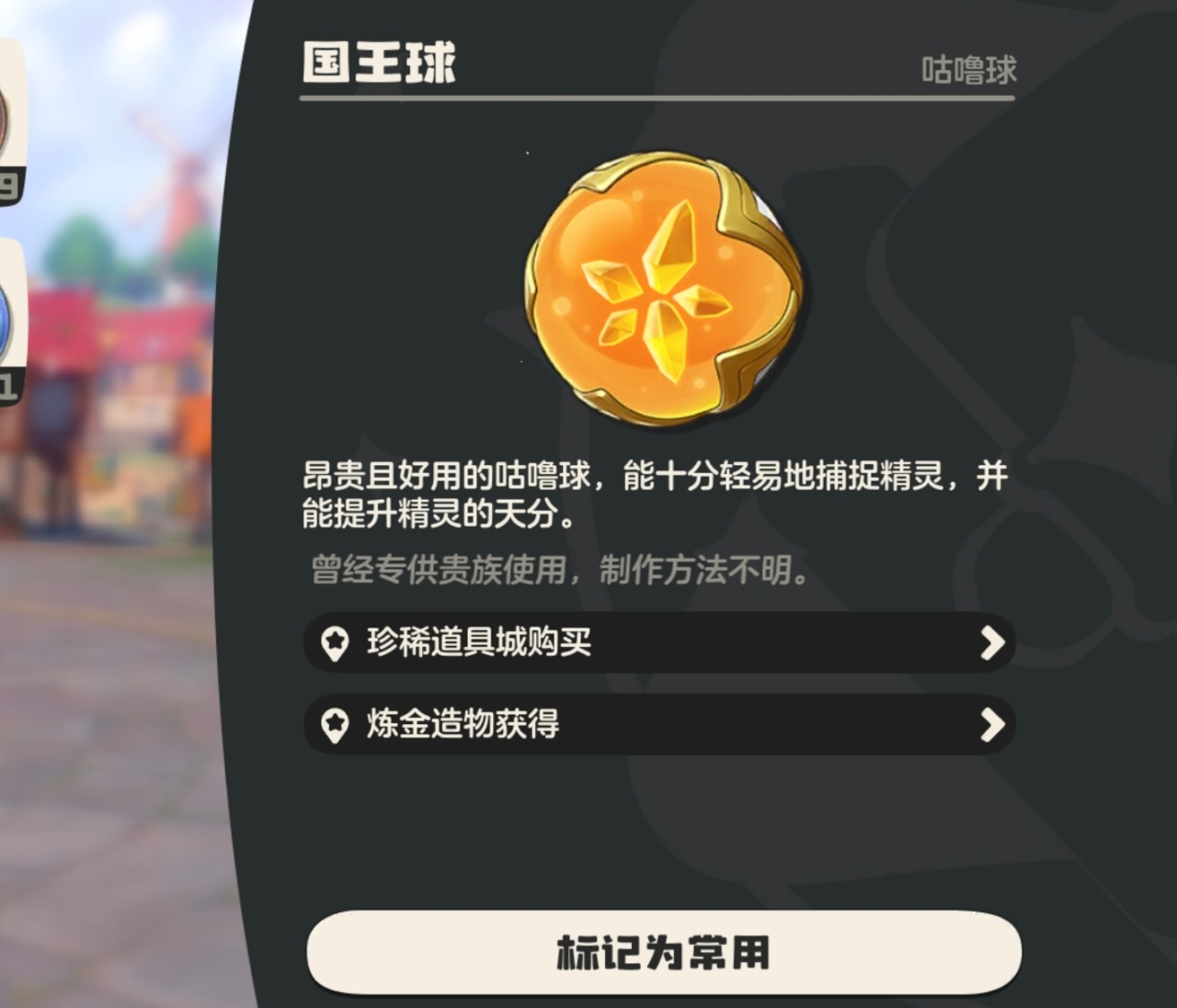 获取:普通球主要是炼金造物获得,高级咕噜球主要是各种任务和收集奖励。