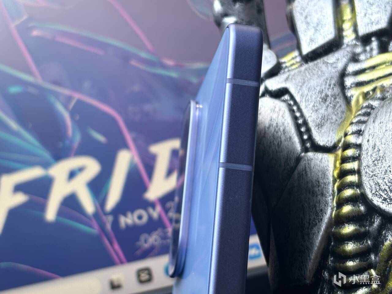 其实初次相见的时候,哥们还是蛮激动的,特别是它的颜值,是真的拉满啦。采用的是霓虹工艺,就像是晚霞一样漂亮,背部是缎面AG玻璃,摸起来就是如同在摸丝绸。而且高强度使用也不会轻易留下指纹。