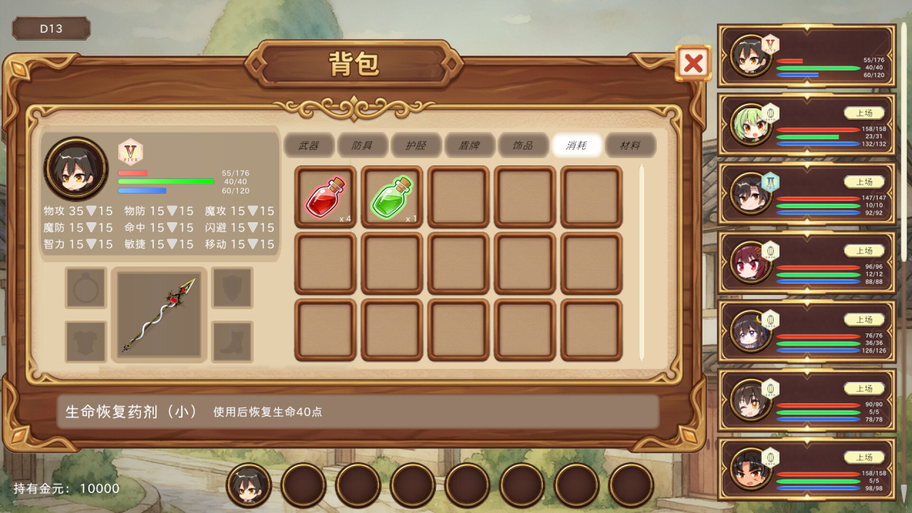遊戲中玩家可以在小鎮裏組建一支8人討伐小隊,培養每個角色,選擇人物進行回合制戰鬥.這些關卡不僅有大關卡還有許多小關卡。