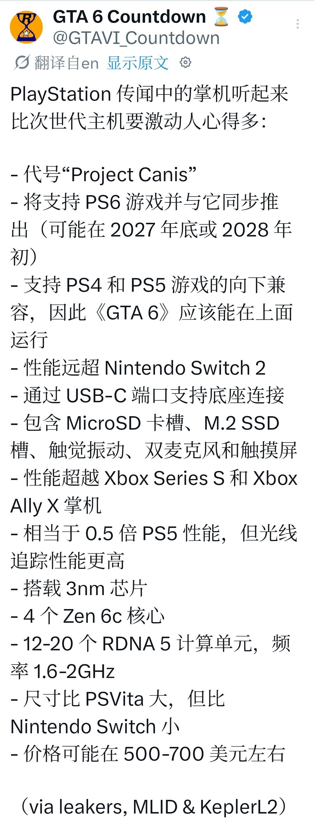 售价预估:500-700 美元,约 3400-4770 元人民币。这个价格明显高于传统掌机,但属于高端 PC 掌机区间。理由是采用顶级 3nm 工艺、高性能 APU、可能的大屏 + 高刷显示屏、长续航电池等,定位“高端便携 PS 体验”而非低价入门。