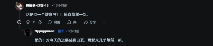 清洁后键盘焕然一新!键帽雪白发亮,底板光洁如镜,开关间再无一丝杂物,对比效果堪比“整容前后”。楼主自己都感慨“变化太夸张了”。