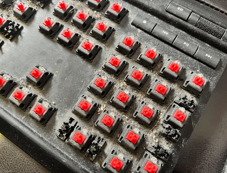 近日Reddit论坛的PC社区上,一位网友分享了一组Corsair K70机械键盘清洁前后的惊人对比图,迅速刷屏,引发大量热议。