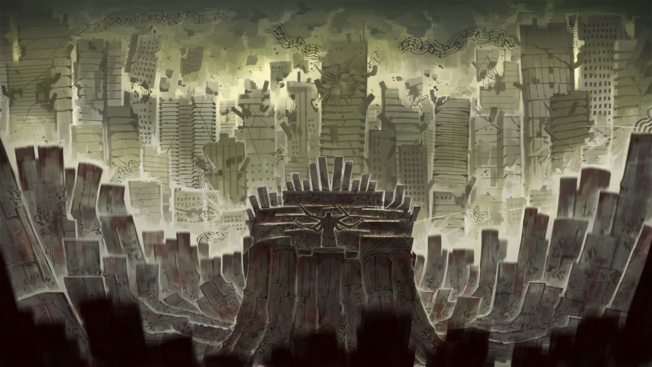 钢琴师在那一刻崩溃了,将醉汉从椅子上拉下来,自己用头砸向钢琴,猛砸,猛砸,血肉模糊的身体变形出四只更适合演奏的手臂,钢琴与他融为一体,他的音乐响彻了整座都市,让九号巷百分之八十的居民成为了他的听众。
