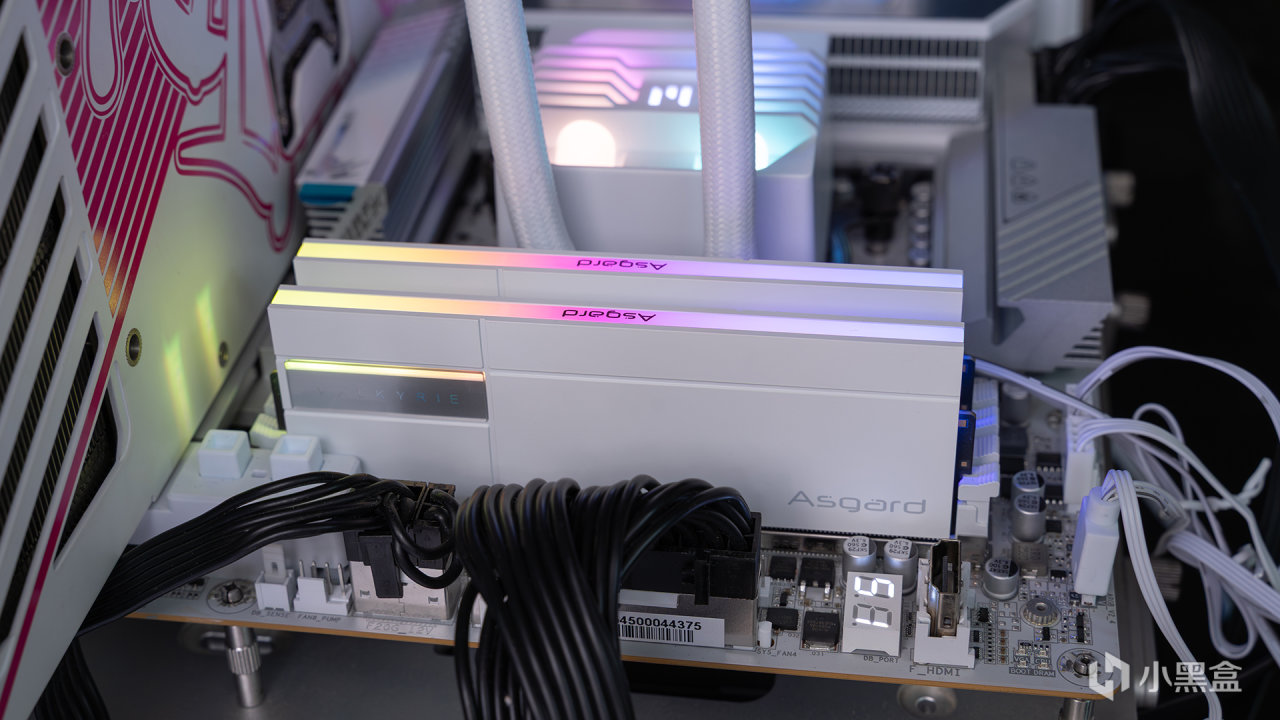女武神二代DDR5 6000C28頂部的ARGB燈效,中間是Asgard LOGO