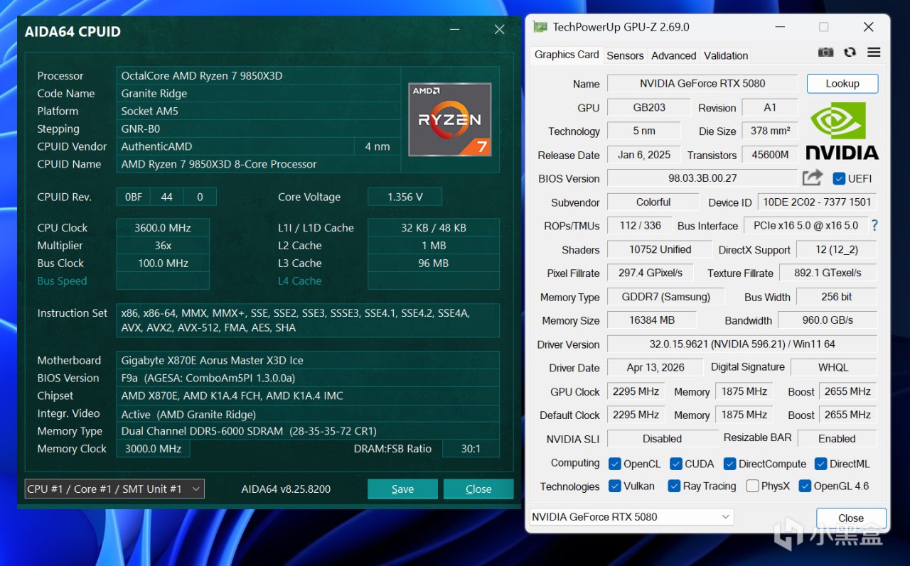 測試配置方面,CPU就是銳龍7 9850X3D,設置開啓PBO ENABLE檔,主板是技嘉X870E AORUS MASTER X3D ICE超級冰雕,爲了配合遊戲測試,顯卡配備頂級的NVIDIA GeForce RTX 5080,操作系統是Windows 26H1最新版本,顯卡驅動是GameReady 596.21 WHQL最新版本。