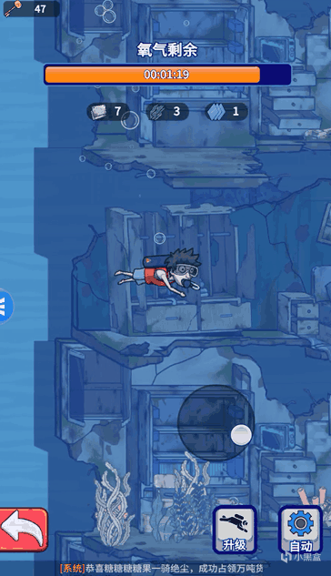 拾荒船对应的资源是木材、碎布、塑料等漂浮物,玩家需要滑动屏幕操控船只打捞它们,并躲避鲨鱼的袭击。