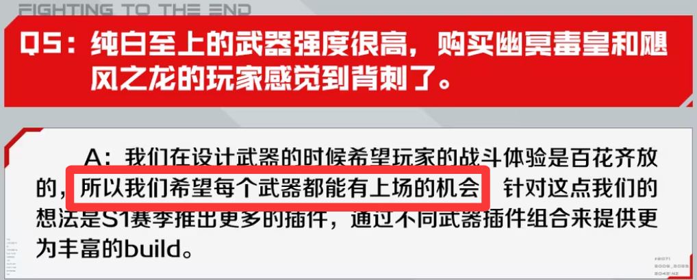 本來S2最初期,我覺得整個生態位都還不錯,還能誇一誇。龍可以玩九龍和追蹤龍,蠍王可以喫到周buff,黃沙風暴和獸神都可以配暗夜之殤,鋼鐵轟鳴、勝利誓約也勉強能用。隨着核爆的修復,不僅死神重回T0,純白至上這個新手槍竟然都能用。