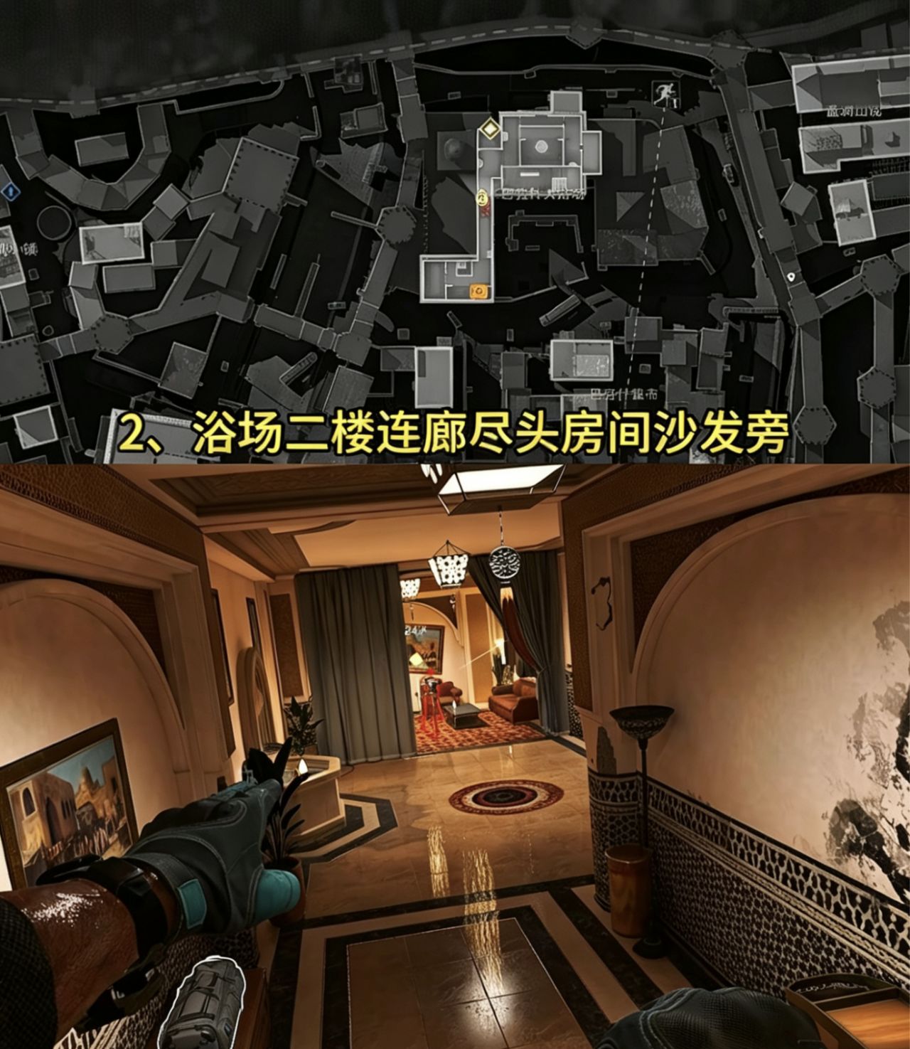 2、浴场二楼连廊尽头房间沙发旁