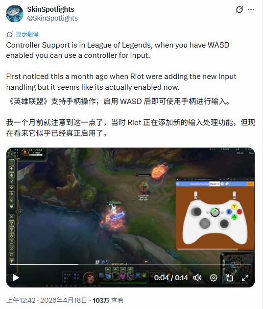 插上手柄 + 打開WASD模式,就能以類似《戰神》《最後生還者》PC版的“動作MOBA”手感玩《英雄聯盟》。很多玩家已經在Reddit和B站曬出“手柄排位上分”的視頻了。