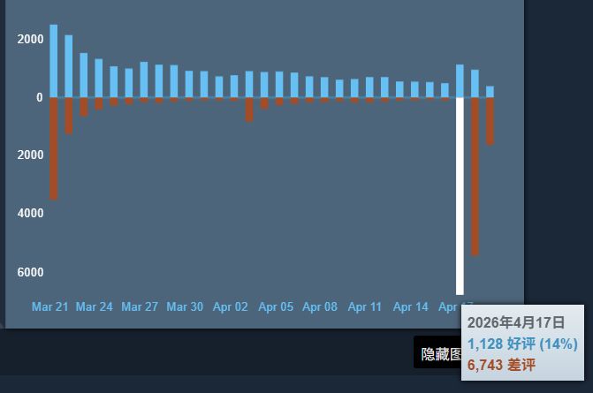 在周五制作组将BETA更新全部实装到正式版以后,国内外玩家们进行了高强度冲锋,好评硬生生从「特别好评」的80%+跌到了现在的「褒贬不一」,国区好评只有44%。