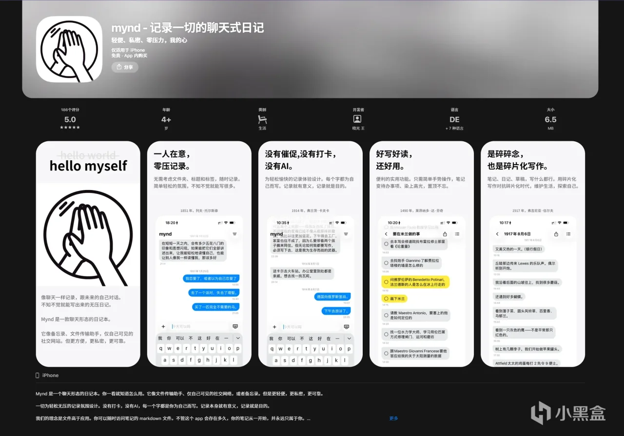 网址:https://apps.apple.com/cn/app/mynd-记录一切的聊天式日记 /id6759103234