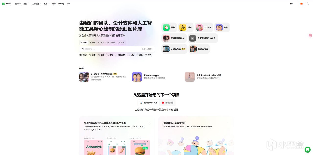 Icons8 - 设计师全能原创素材与 AI 工具站