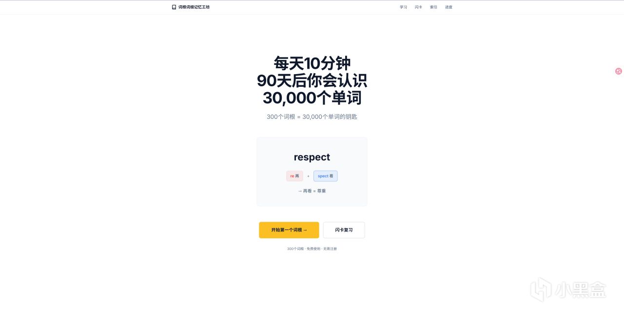 平台核心逻辑是掌握 300 个常用词根词缀,即可快速推导、记忆 30000 + 单词,记忆效率大幅提升。 网站界面简洁清爽,无广告干扰,专注单词学习,支持词根查询、单词拆解、强化记忆等模式,适合备考四六级、考研、雅思、托福的学生,以及想快速提升词汇量的学习者。项目开源可查,数据权威可靠,轻量化打开即用,是高效背单词的实用学习工具。