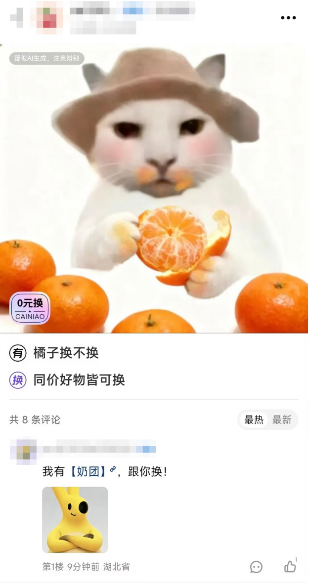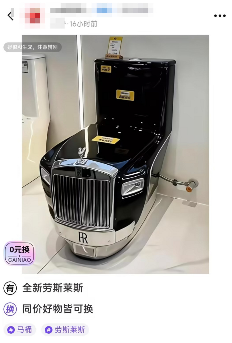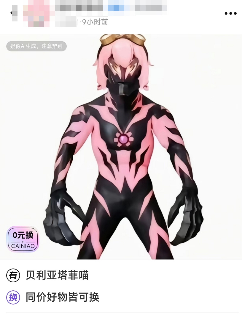 在这里,只有你想不到的,没有你换不到的。得益于优秀的匹配机制,哪怕图片上写着明晃晃的“疑似AI生成,注意甄别”,也能刷新出比这更AI的神秘宝贝,来上一场王牌对王牌。