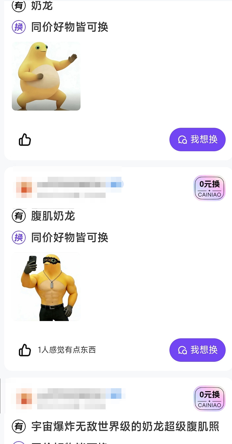 虽说全都是大笑奶龙这样的变体,但诸如宇宙爆炸无敌世界级之类的形容词与腹肌照,还是能牢牢吸引住每一位换物者的目光。