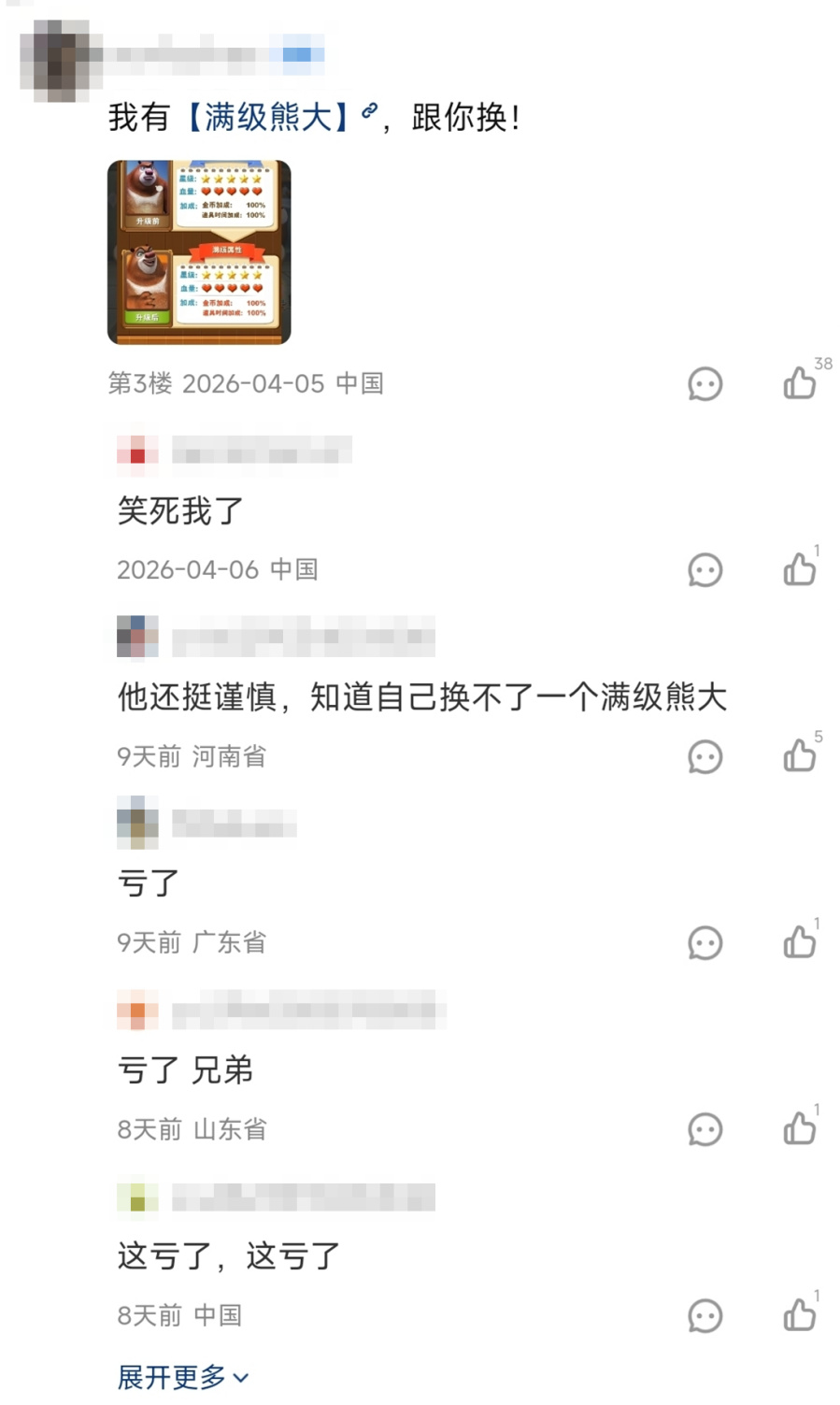 没错,就是满级熊大——在最近爆火的某以物换物平台上,你能看到大把天马行空的交易,它们乍一看毫不合理,但若是细细探究下去,便会发现这些交易全都顺理成章。