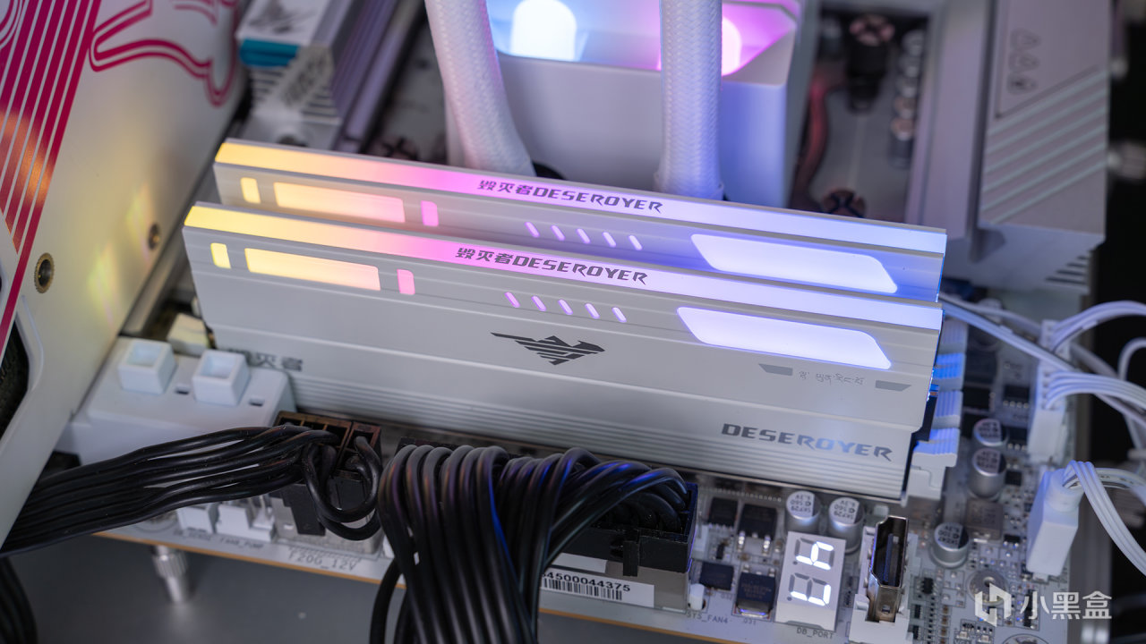 毁灭者锦衣卫DDR5系列在顶部布置了双排16颗1600万色独立灯珠,相比同价位灯条色彩表现会更丰富和细腻,支持主板软件统一控制RGB灯效。