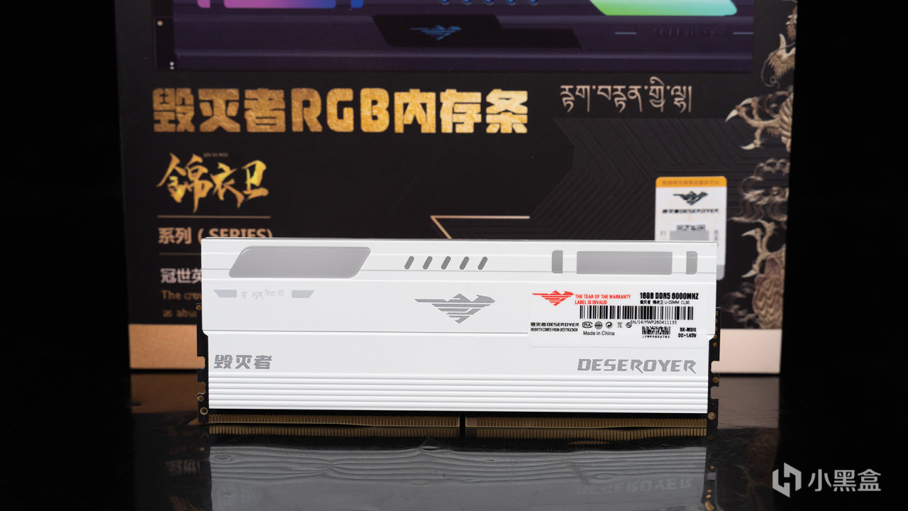 打开包装,能看到内存稳稳包裹在黑色珍珠棉层里,内存金手指有专门的保护套,还有一张关于锦衣卫命名灵感的小卡片,整体档次感确实杠杠的没得说。