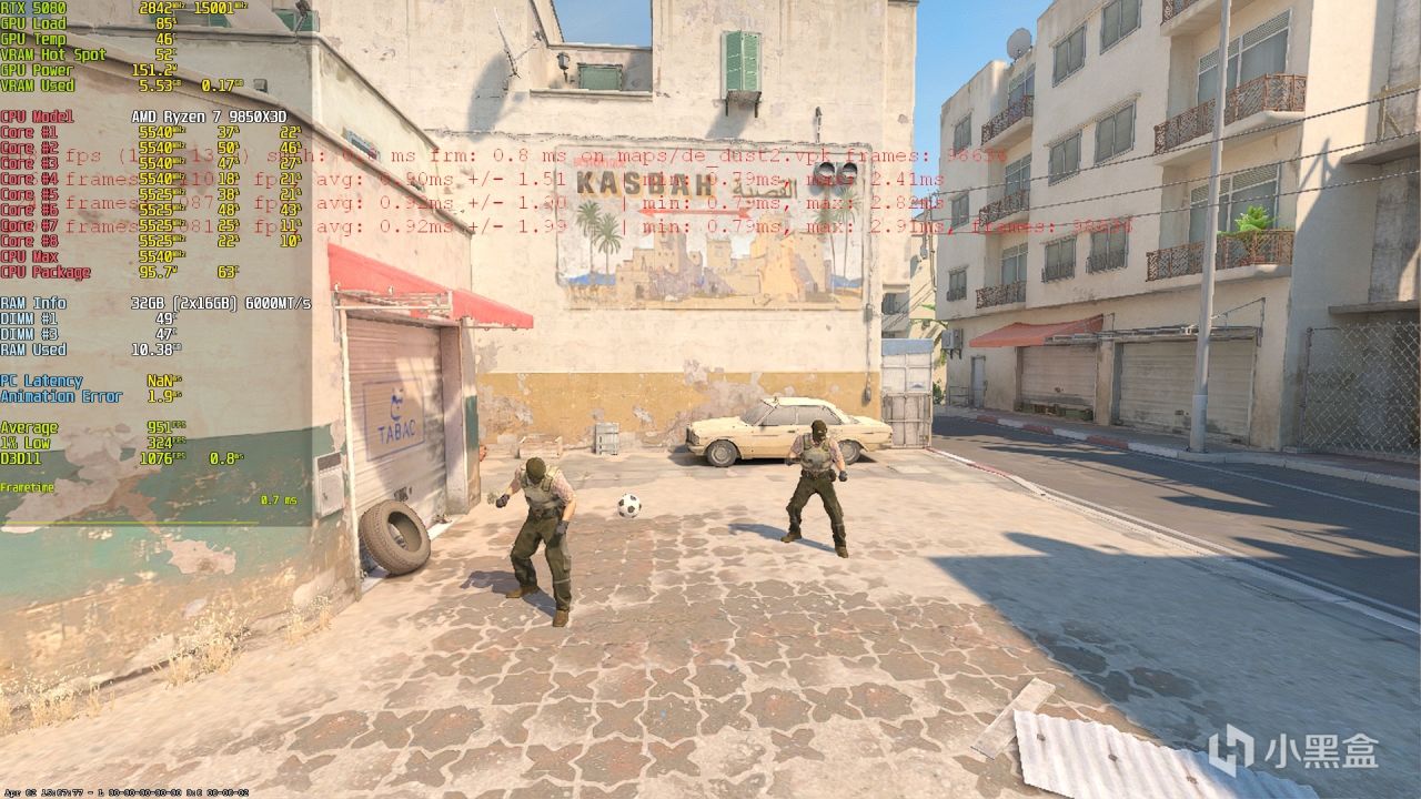 1080P《Counter-Strike 2》预设低画质,基准测试平均帧数达到951fps,1% LOW帧则达到324fps,千帧电竞不在话下。