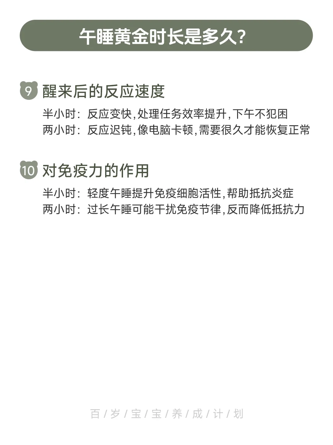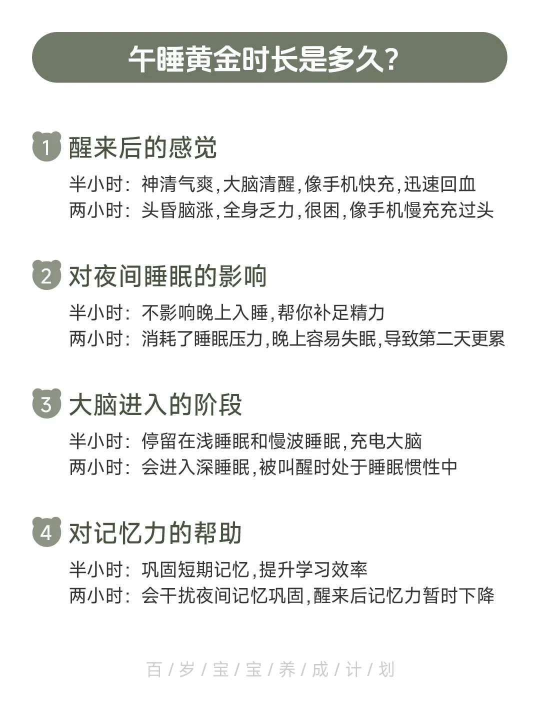 午睡半小时和午睡两小时的区别 2026-04-20 生活杂谈 午睡不是越长越好。半小时是快充,2小时是过充。除非通宵了,否则请控制在30分钟内。午睡睡对是良药,睡错是毒药。 更多游戏资讯请关注:电玩帮游戏资讯专区 电玩帮图文攻略 www.vgover.com