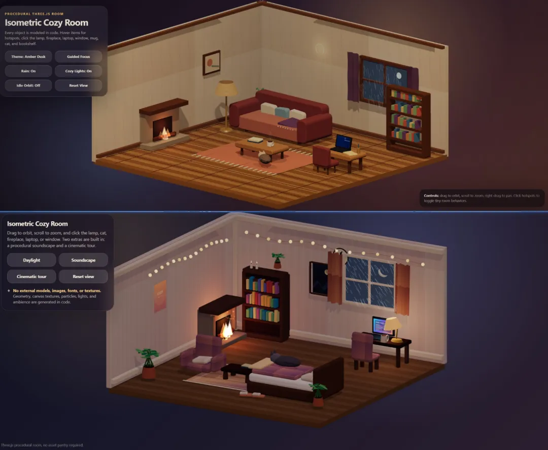 更新後的 GPT-5.4 Pro 在 SVG生成、Three.js渲染、複雜前端頁面這些以前比較喫力的場景,現在one-shot就能出高質量結果。