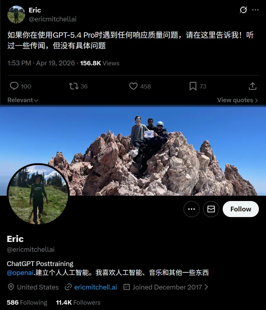 昨天,ChatGPT的GPT-5.4 Pro(200/100美元計劃)底層模型發生了靜默升級。
