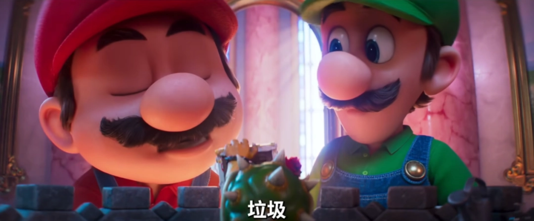 最开始,编剧在酷霸王和马力欧兄弟之间,埋了很多矛盾伏笔——酷霸王被缩小蘑菇变成了小王八形态,不得不在囚禁状态下夹着尾巴收敛脾气,装可怜伺机复原;马力欧和酷霸都倾心爱慕碧姬公主,总能擦出火药味,马力欧渴望保持酷霸变小的状态,降低酷霸对碧姬的威胁,但路易吉却因酷霸在他面前表现出的“友善”,而态度更为软化,倾向于将酷霸变回原状……