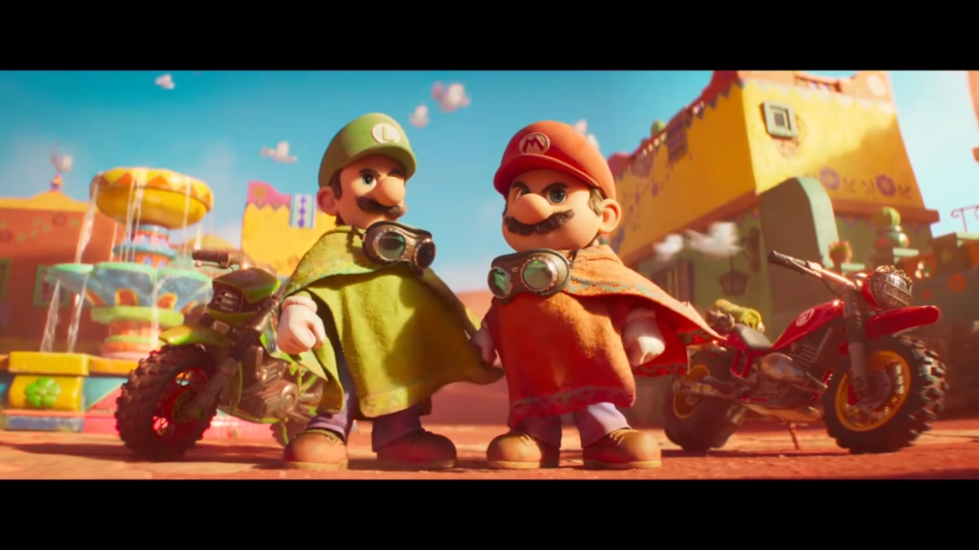 就拿预告片里放过的开头一段来举例吧——马力欧兄弟骑的越野摩托,显然在致敬《马力欧赛车Wii》;呼啸而过的沙漠和随后抵达的墨西哥骷髅沙沙小镇,来自《超级马力欧奥德赛》的第一个大关“沙之国”。