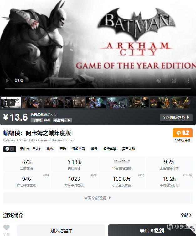 16.《 蝙蝠侠:阿卡姆之城年度版》