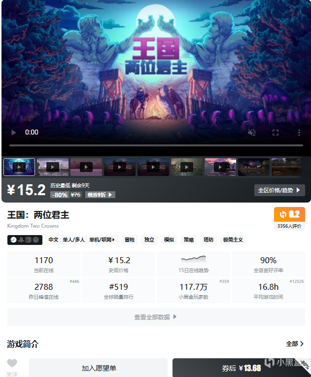 游戏史低化是盒友消费的客观需求!多个厂商旗下游戏史低折扣。众多佳作迎来史低!包括《主播女孩重度依赖》、《王国:两位君主》、《福尔摩斯:觉醒》在内的多款热门游戏均创下历史最低价,为玩家提供了绝佳的入手时机。