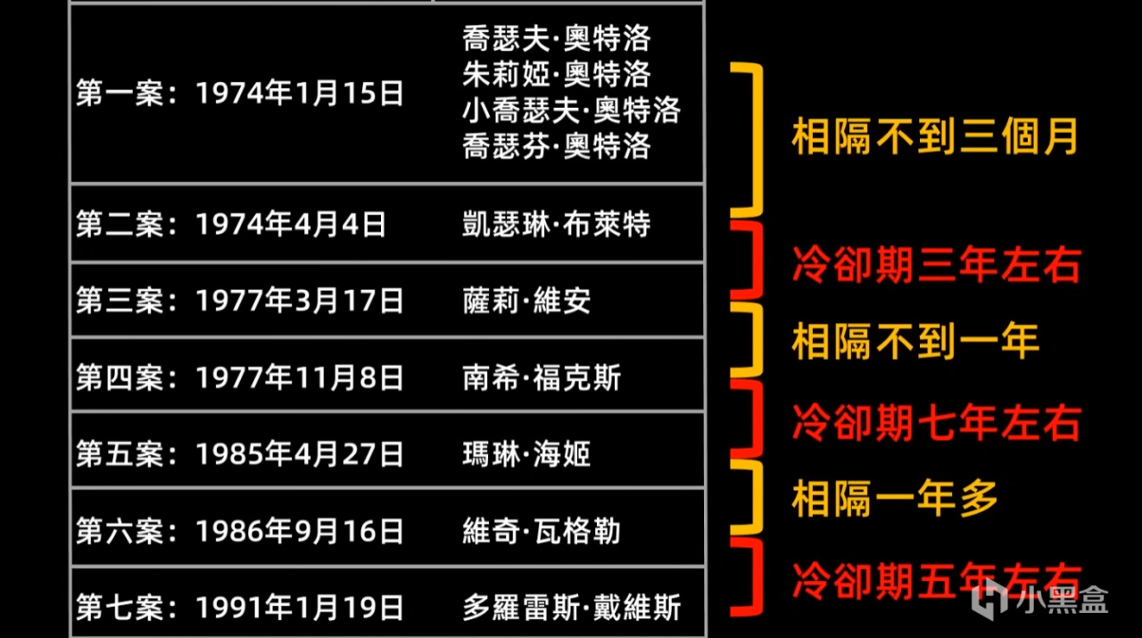 第二個原因,是他極度謹慎的作案手法。他會切斷電話線、捆綁受害者、不留目擊證人,現場幾乎不留下任何有用線索。而且他的作案時間跨度極大——從1974年到1991年,整整17年間,他只殺了10個人,作案間隔最長達到8年。警方很難將如此分散的案件串聯起來。