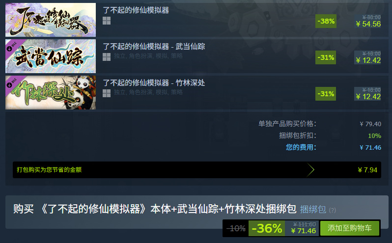 《了不起的修仙模拟器》本体+武当仙踪+竹林深处捆绑包✨