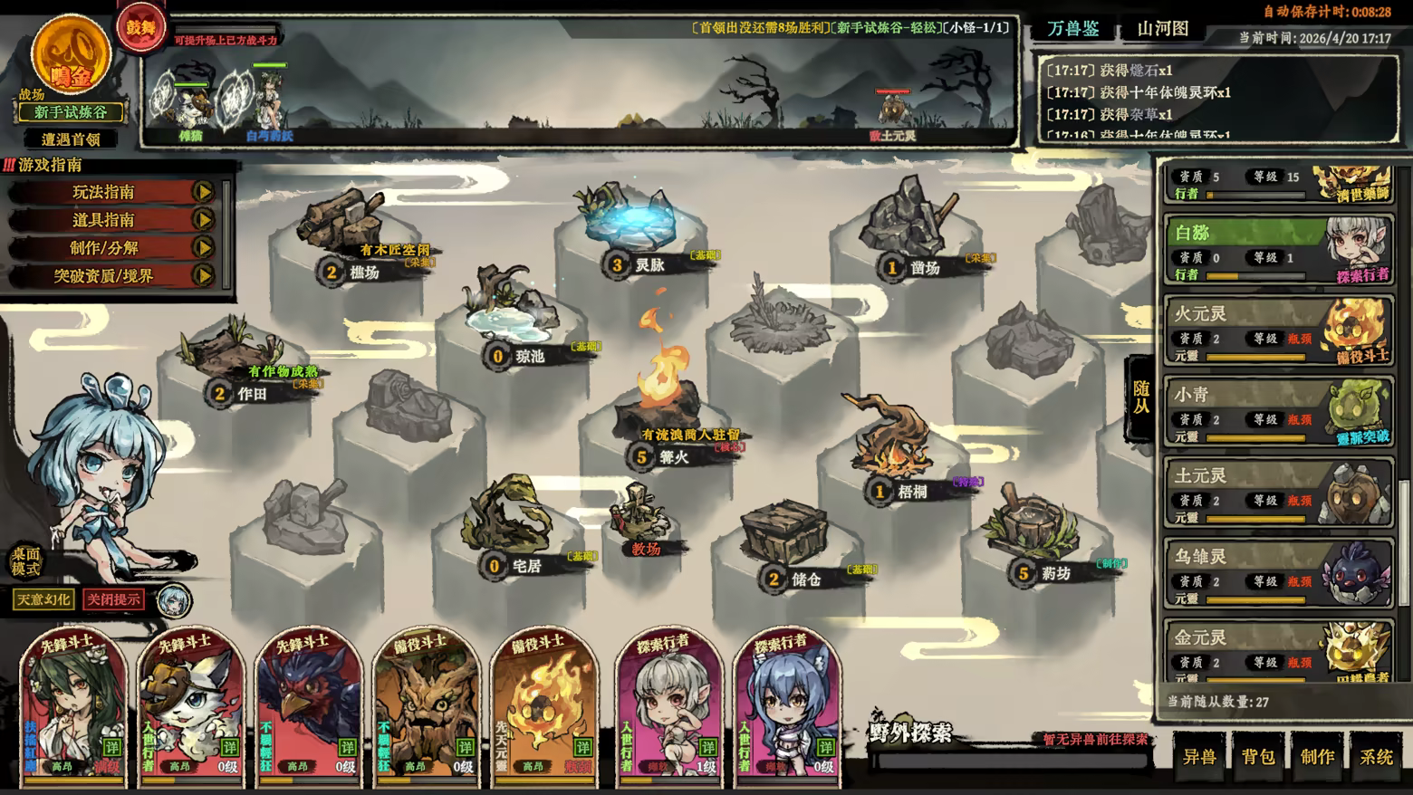 遊戲中擁有各種玩法,可派遣它們參與戰鬥、探索、砍樹、挖礦、種田、煉藥,煉器等等。