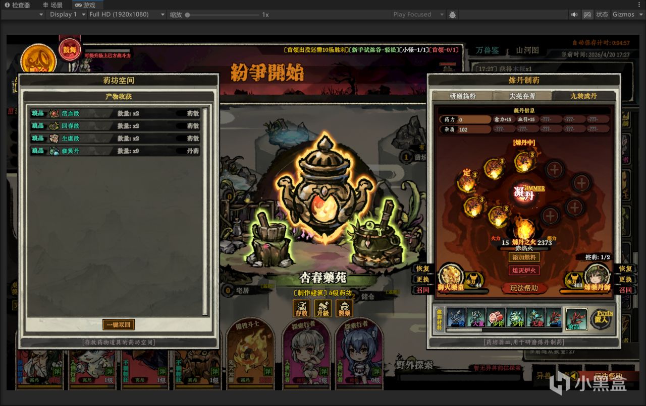 收集各種異火和草藥材料,可以在藥坊處搗藥、煎湯、煉丹,獲得更好的修煉物資,使藥物效果最大化。