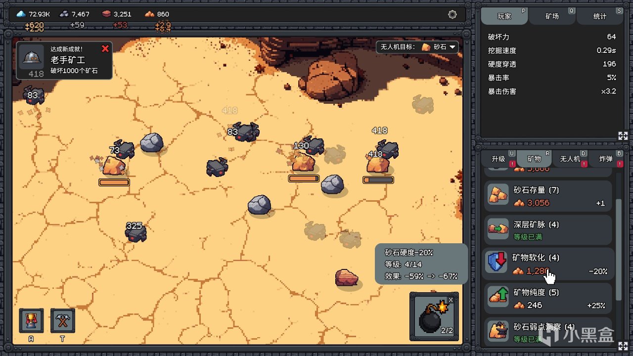 比较有意思的是,你还可以升级把低等矿石的部分伤害转移给高等矿石、或者让低等矿石开采后概率变成高等矿石。