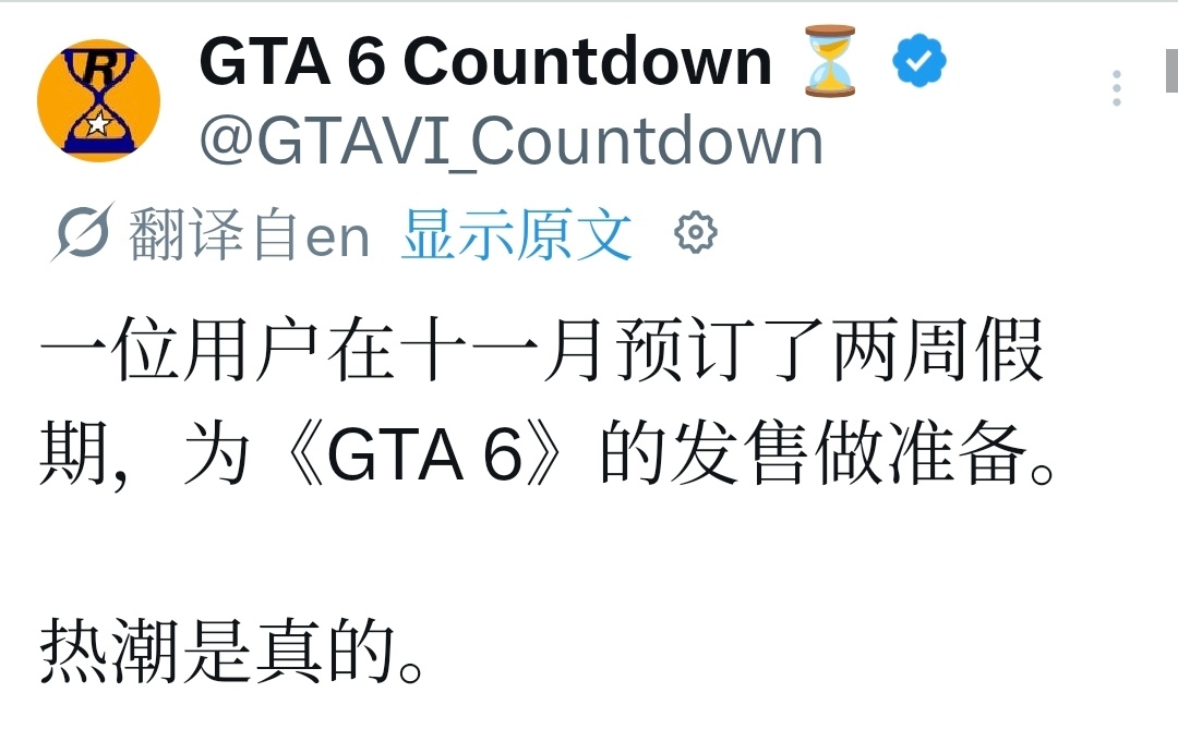 最近,一名海外玩家在社交平台上晒出了自己的工作排班表。从11月16日开始,他的几乎所有工作日都被标上了“休假”字样,整整两周时间,就为了专心迎接《GTA 6》。评论区瞬间炸锅,尤其是11月19日这个日期被反复刷屏——因为这就是Rockstar官方确认的发售日。