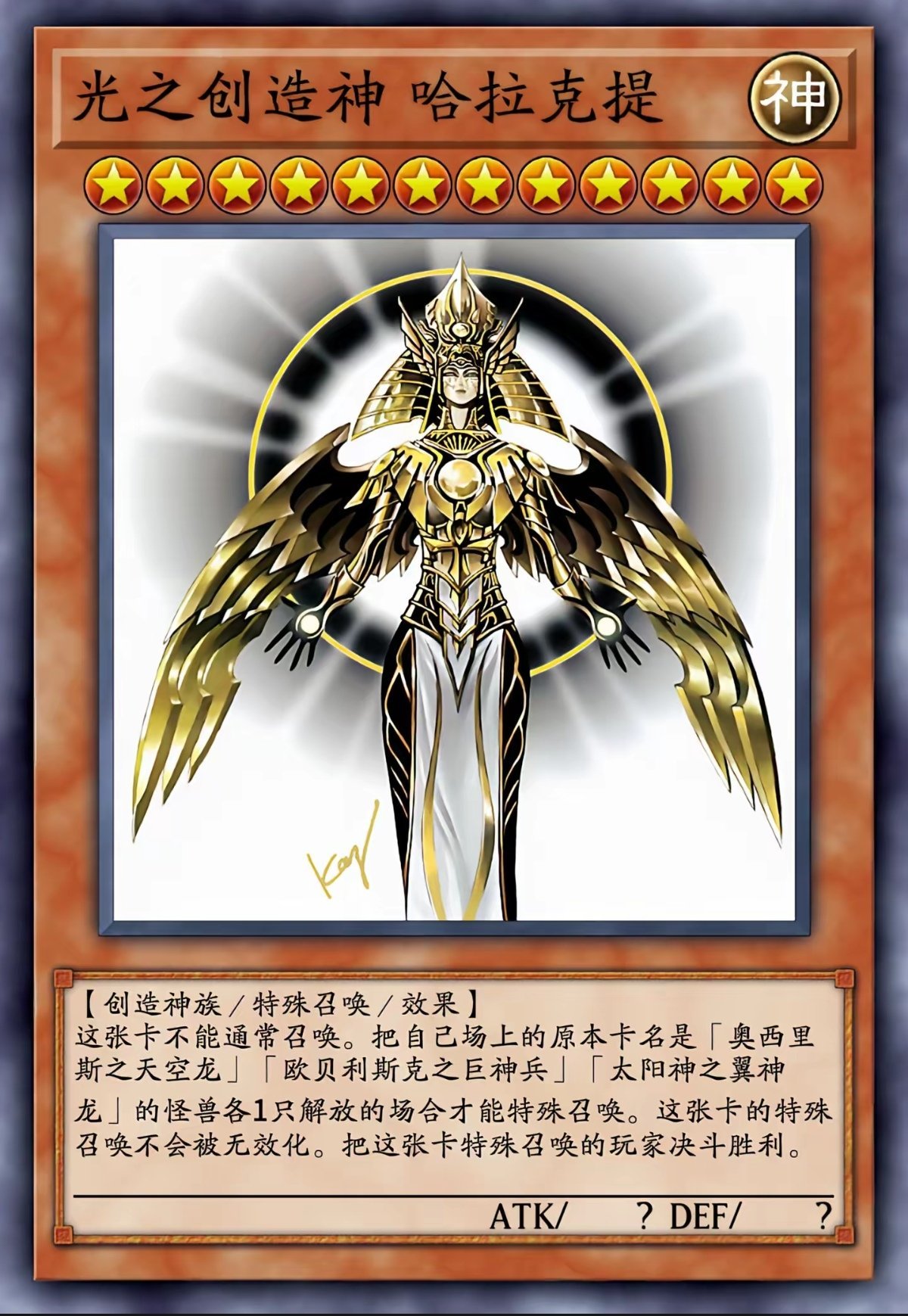 当你在场上集齐“三幻神”之后,就可以召唤“光之创造神 哈拉克提”,直接获得游戏的胜利。