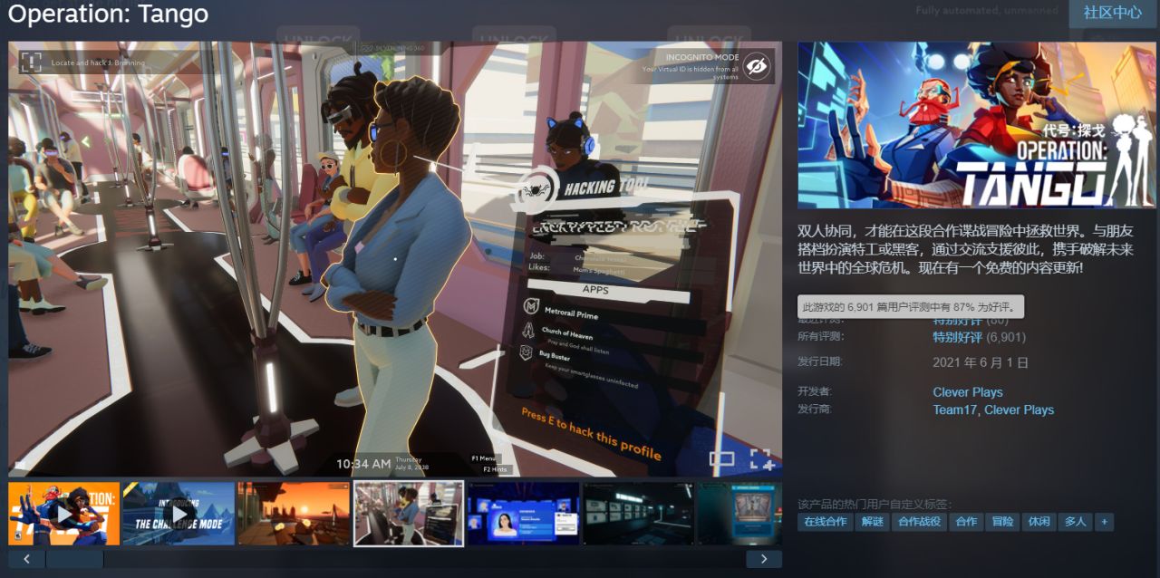 特工+黑客,只靠语音沟通,拯救世界。 你和朋友各看各的屏幕,一个在第一人称射击和潜入,一个在上帝视角破解监控。没有对方的情报,你们就是瞎子!对此游玩本作也需要麦克风~
