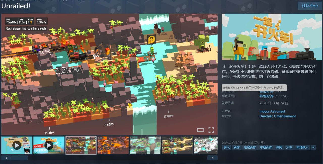 铺铁轨,别让火车脱轨——然后互相坑。一人采资源,一人铺铁轨,火车在后面追着跑。