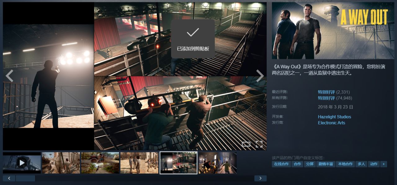 《双人成行》工作室的处女作,也是相当值得游玩的!是一款关于越狱的游戏,在后边还可以激情的枪战环节~