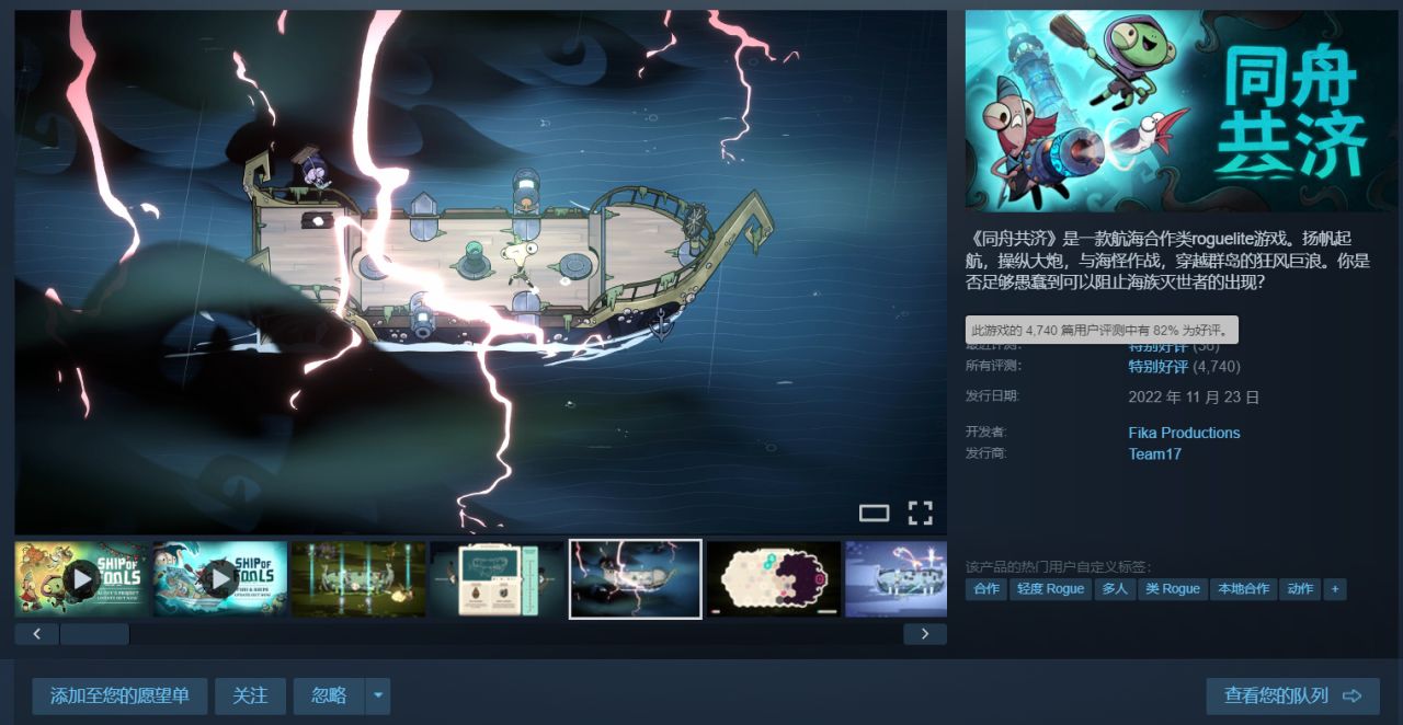 航海Roguelite,一人开炮,一人修船,防着海怪掀翻你们的船。有上百种饰品和遗物,能搭配出各种奇葩套路~