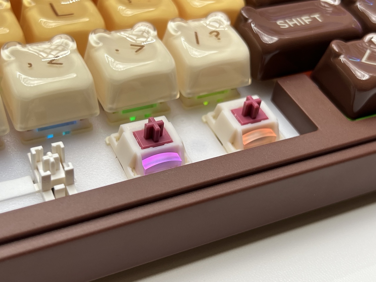 所以说,焦糖布朗尼小熊要颜值有颜值,要码字手感有码字手感(板簧Gasket结构+6层消音填充),同样很适合送给爱玩游戏、经常接触键盘的女性玩家。