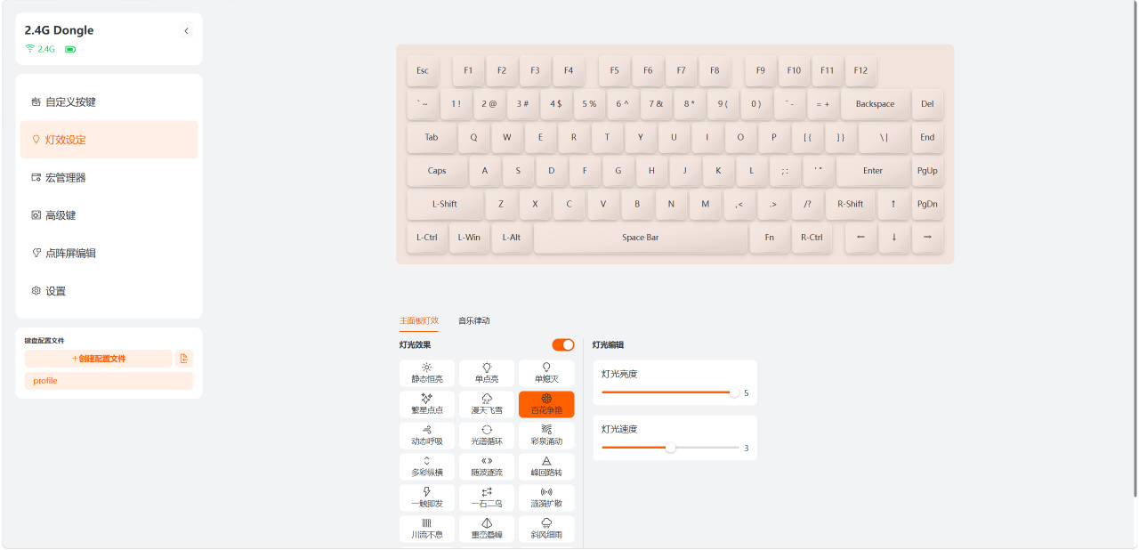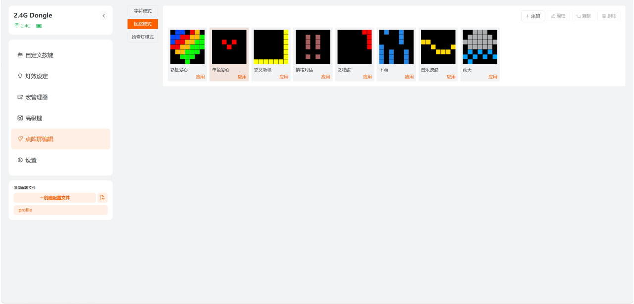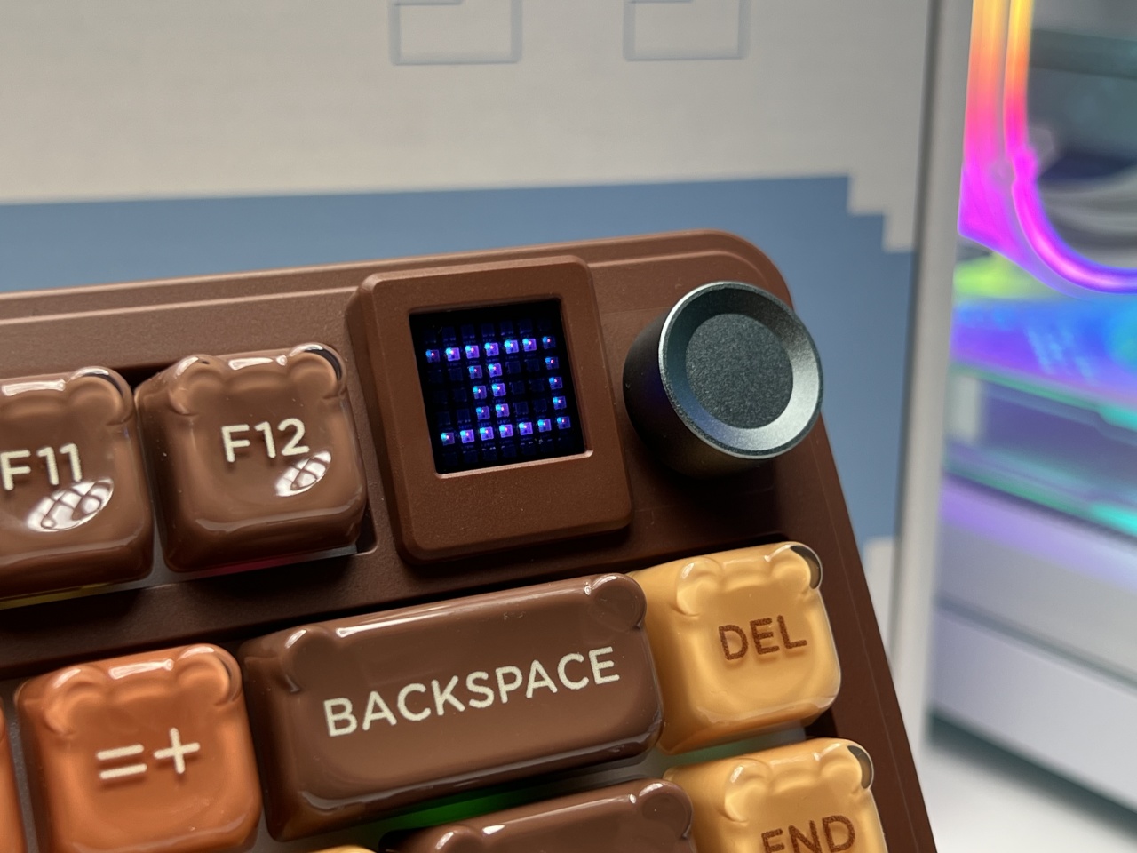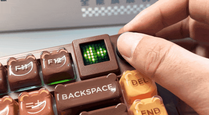这块点阵屏搭配驱动能自定义十多种动态图案,而且它还支持和键盘的RGB背光随音乐律动,可玩性很丰富。