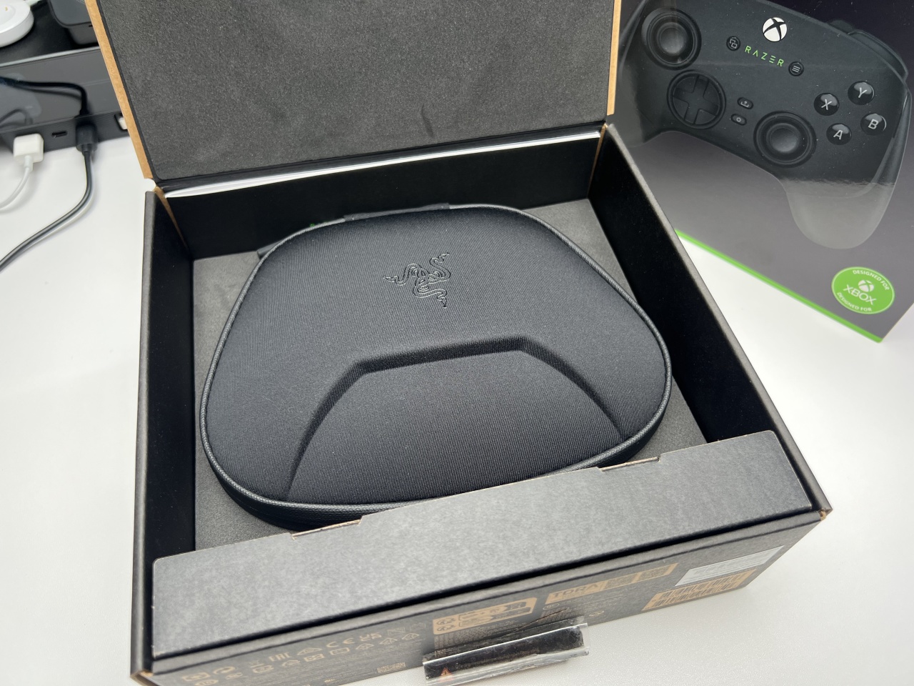 打开包装,雷蛇给幻影战狼V3Pro专业版配备了手柄专用的布面收纳包;
