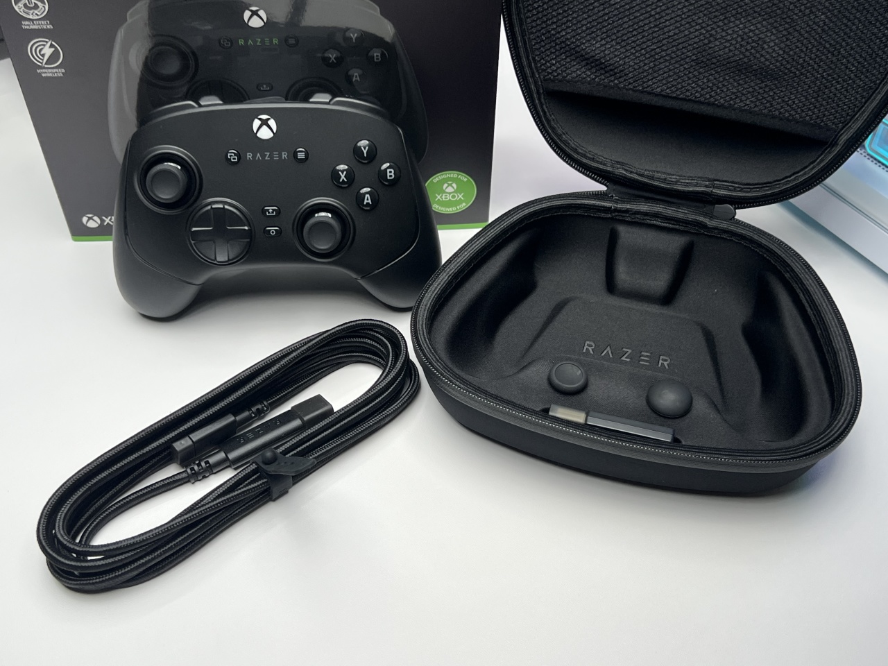 我发现我玩游戏用的最多的手柄是Xbox手柄和一些国产品牌的手柄,包括在准备入手新手柄时也是自然而然联想到Xbox和国产,但其实大名鼎鼎的雷蛇也做手柄(刚知道雷蛇以为它只做键鼠,其实除了键鼠,耳机、手柄、拉伸手柄、摄像头等都有做),就比如我手上的这款售价1599¥的雷蛇幻影战狼V3Pro专业版。