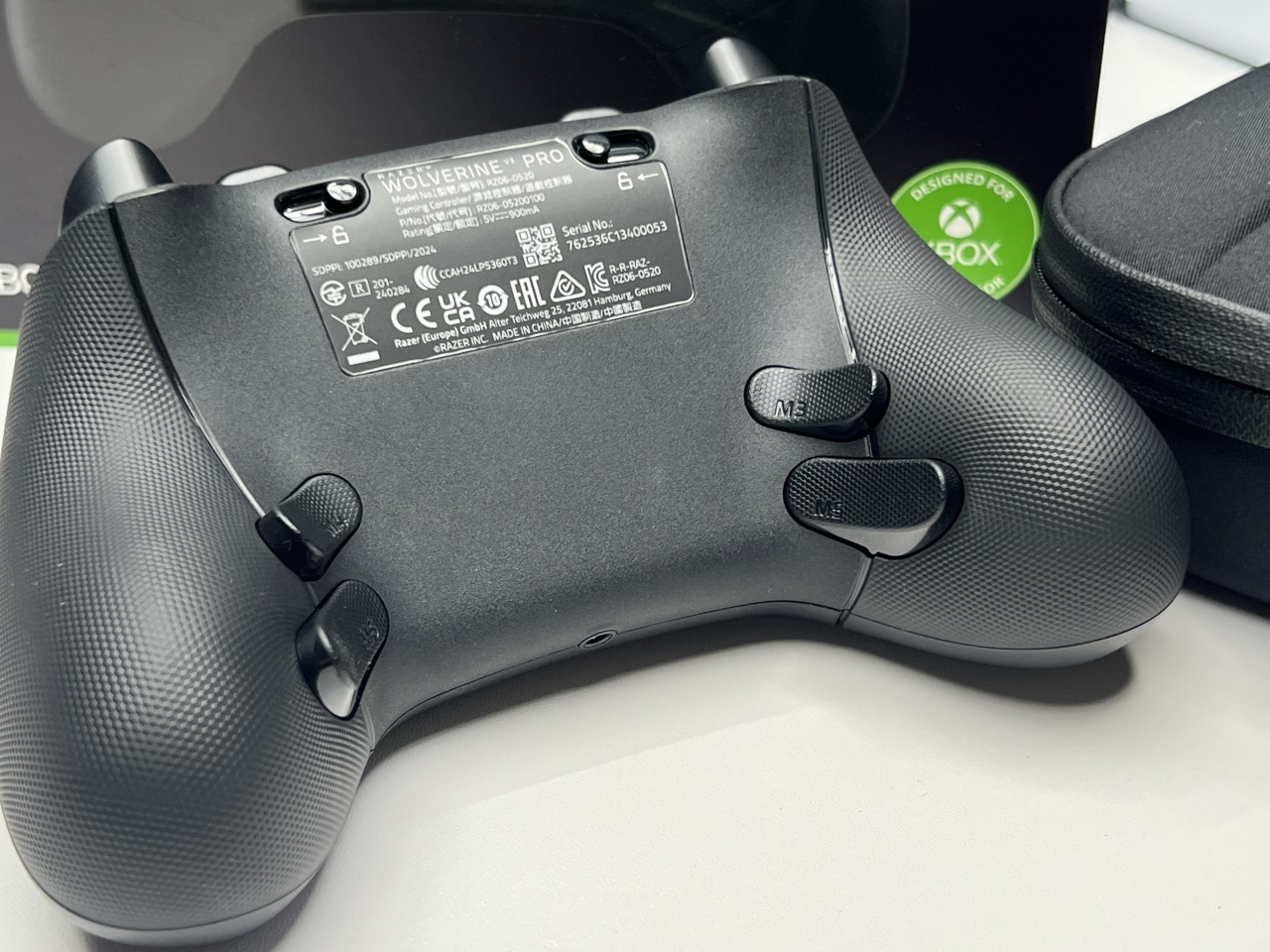 手柄底部的四颗背键也是微动开关,搭配手柄舒适的模具,背键的按压触发很轻松,手感也很nice,值得给个好评。