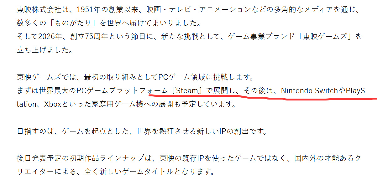 日本東東映株式會社成立東映遊戲,入局PC遊戲,主攻Steam!