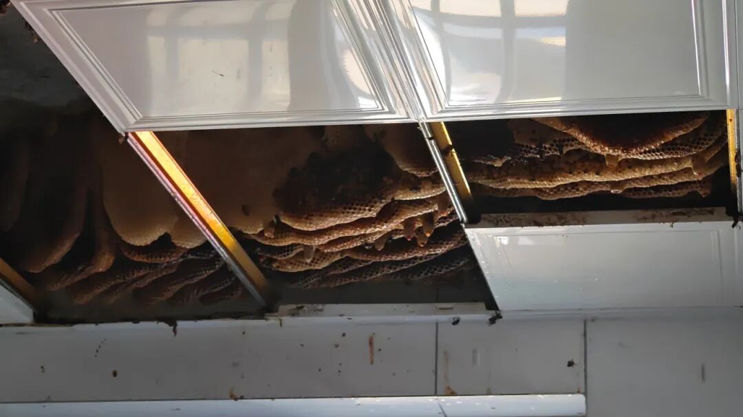 消防人員到場後,在廚房窗外上方找到蜂羣入口,穿戴專業防蜂服拆開弔頂鋁扣板,內部景象讓經驗豐富的消防員也頗爲喫驚:整個吊頂夾層已被蜂巢完全佔據,多層蜂窩結構層層疊疊,形成一個完整的蜂羣"王國"。
