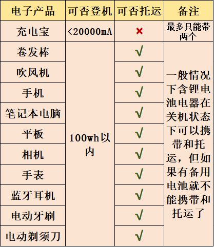 充电宝必须随身带,绝对不能托运,额定能量不超过100Wh(约27000mAh)的可以直接带,必须有清晰的3C认证标识,且可以查到序列号(忘了是不是叫这个了)标识磨花了可能被没收。