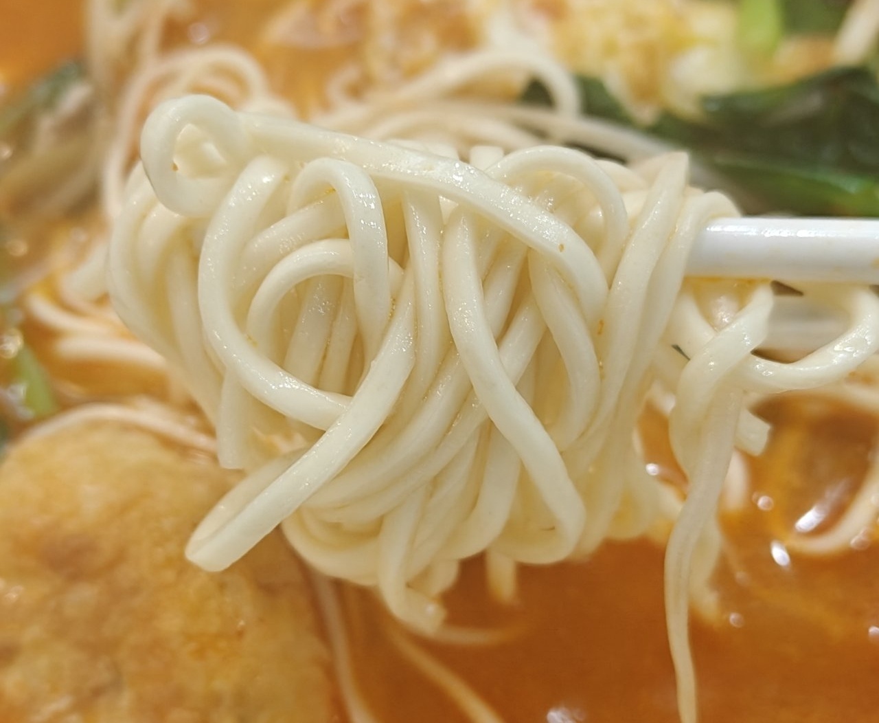 点餐时面可选南京碱面或北方手擀面,特地来吃当然是会选南京碱面了,硬度我选的适中,但依然是偏硬有嚼劲的口感。标准的面量不太多,在点餐时可以选上免费的加面。